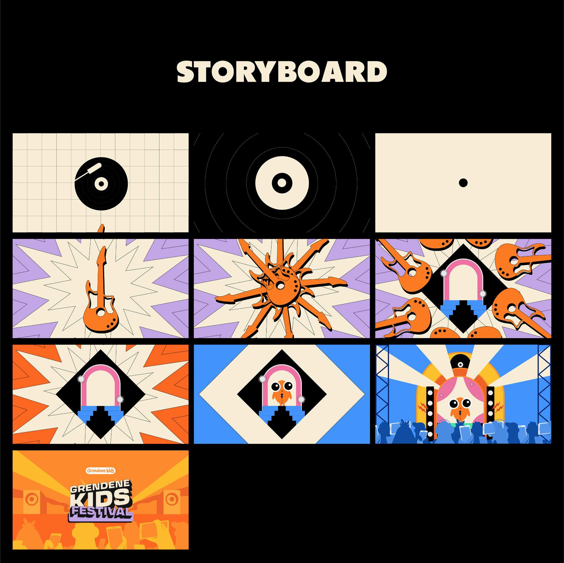 EN: Visual identity for Grendene Kids internal sales convention. Key Visual created from the music festival concept.