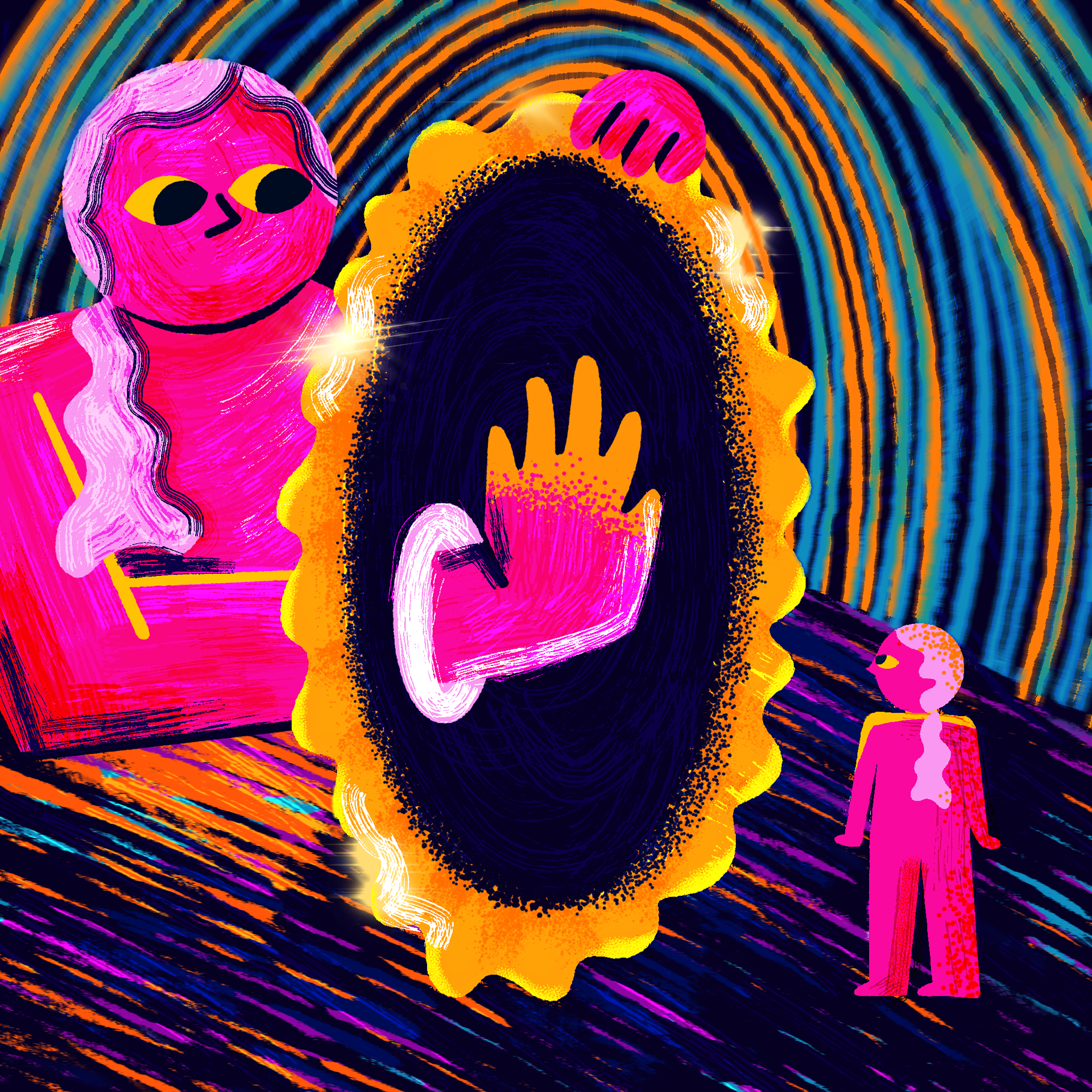 Ilustrações reflexivas e coloridas sobre se sentir só e perdida na própria existência. Destaque na categoria Ilustração, selo fornecido pelo Behance.